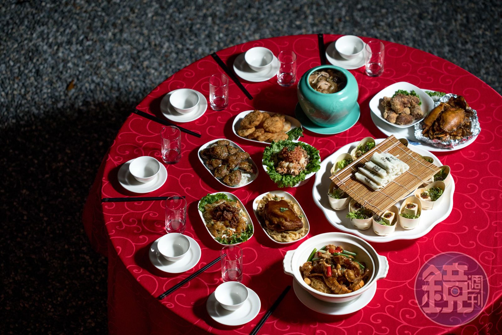 好客大方也在彰顯主人家的驕傲,因為主人家交待要菜色多款,用料豐盛,每一盤份量要大,不怕客人吃,端菜的阿姨們還會在下半場一開始就逐桌發放塑膠袋,歡迎客人打包,像是經常安排在中後段上菜的「紅蟳米糕」「大封肉」等,都是歡迎客人打包的「菜尾」伴手禮。