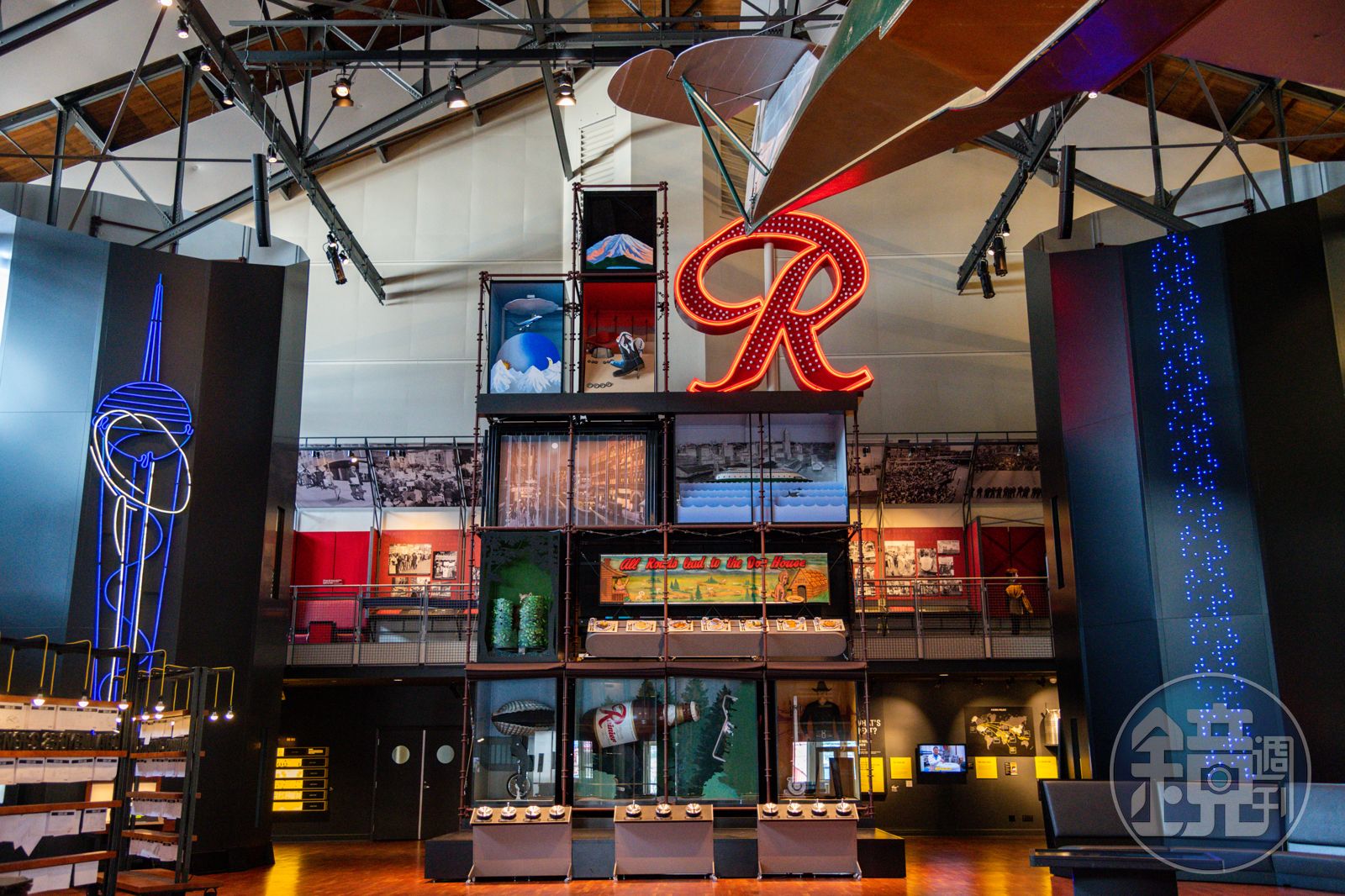 從外頭走進去,挑高的展場上空吊著一台老飛機,還有一台大型遊戲機,搖動轉盤就會叫出西雅圖過去的某一段歷史,設計樸實復古卻相當有趣,每個進門的遊客都忍不住動手玩上一輪,寓教於樂地講述著過往的西雅圖故事。