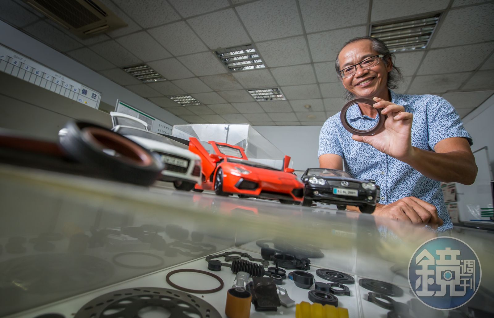 轉型後,全拓的產品從汽車補修的次級零件升級到原廠組裝零件,吳崇讓吐出一口煙圈,緩緩地說:「賽車手決勝負都是在轉彎的地方,一個轉彎,你贏他0.1秒,100個轉彎,你就贏10秒,嚇死了。」