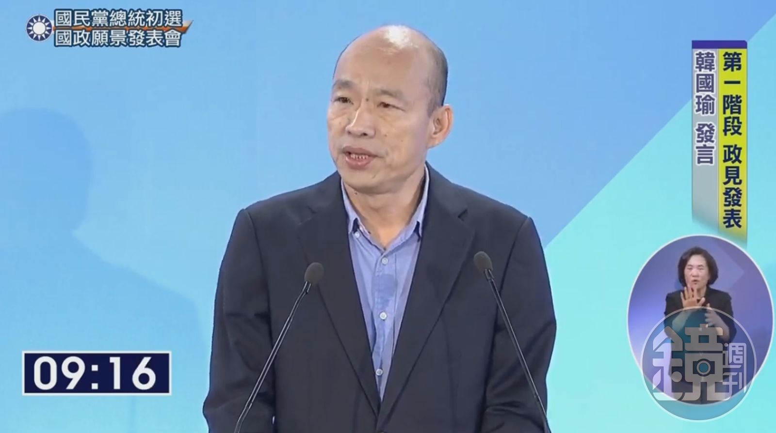 第3場國政願景電視發表會,主題為經濟、財政、能源與環境。韓國瑜在談到能源議題時,當場痛批民進黨提出的「2025年非核家園」,「不客氣說,這是花大錢的欺騙騙局!」