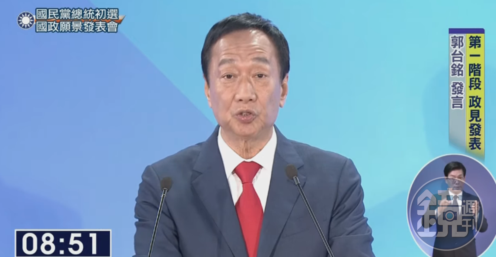 第3場國政願景電視發表會,主題為經濟、財政、能源與環境。郭台銘重提少子化議題,他說,前幾天他提到「0到6歲孩子國家幫忙養」政見時,有許多政治人物都說不可能,「如果我跟其他政治人物一樣,我就不用出來選了!」
