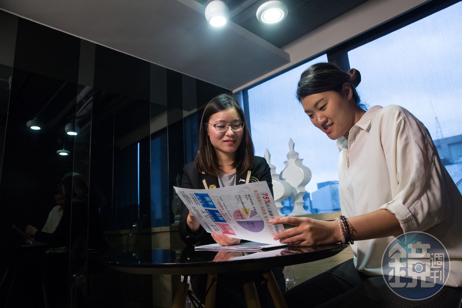 34歲的楊雅涵是磊山保經業務經理,25歲學校畢業後便投入保險業,考量自身保障需求,進入職場不久便固定提撥部分薪資去買保險。