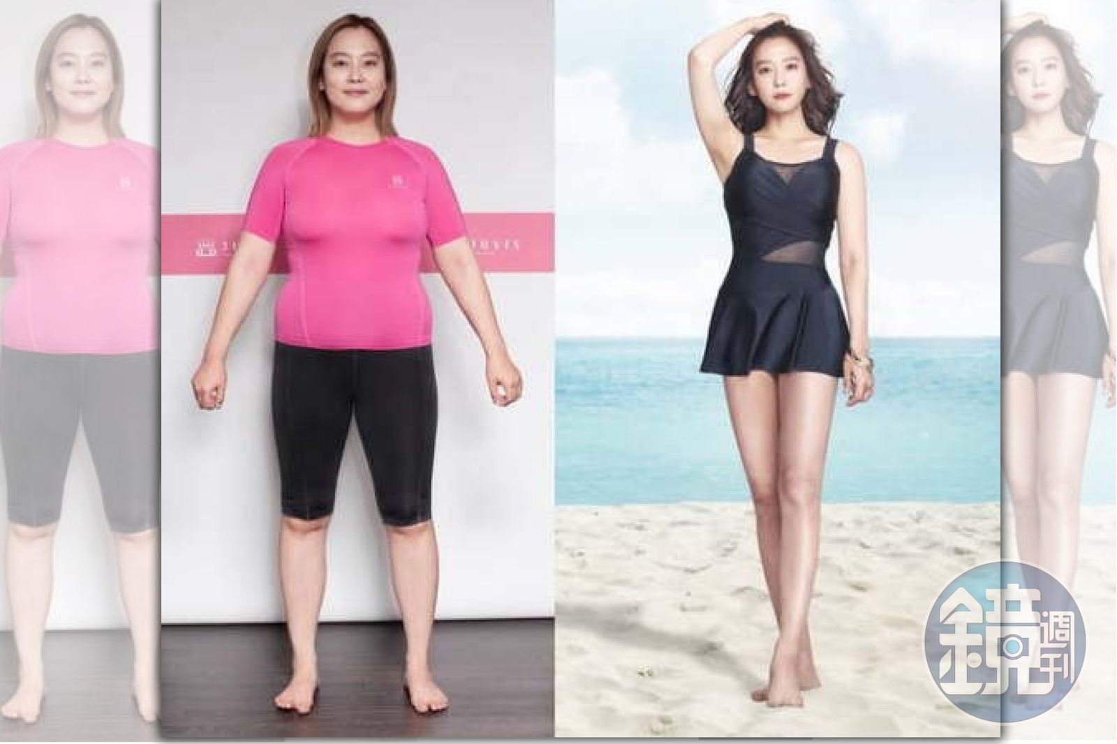 Dana(左)因被分手、朋友過世暴肥,近日成功在2個月瘦身27公斤拍攝泳裝照。(翻攝自Naver)發布時間:2019.07.05 15:53 臺北時間