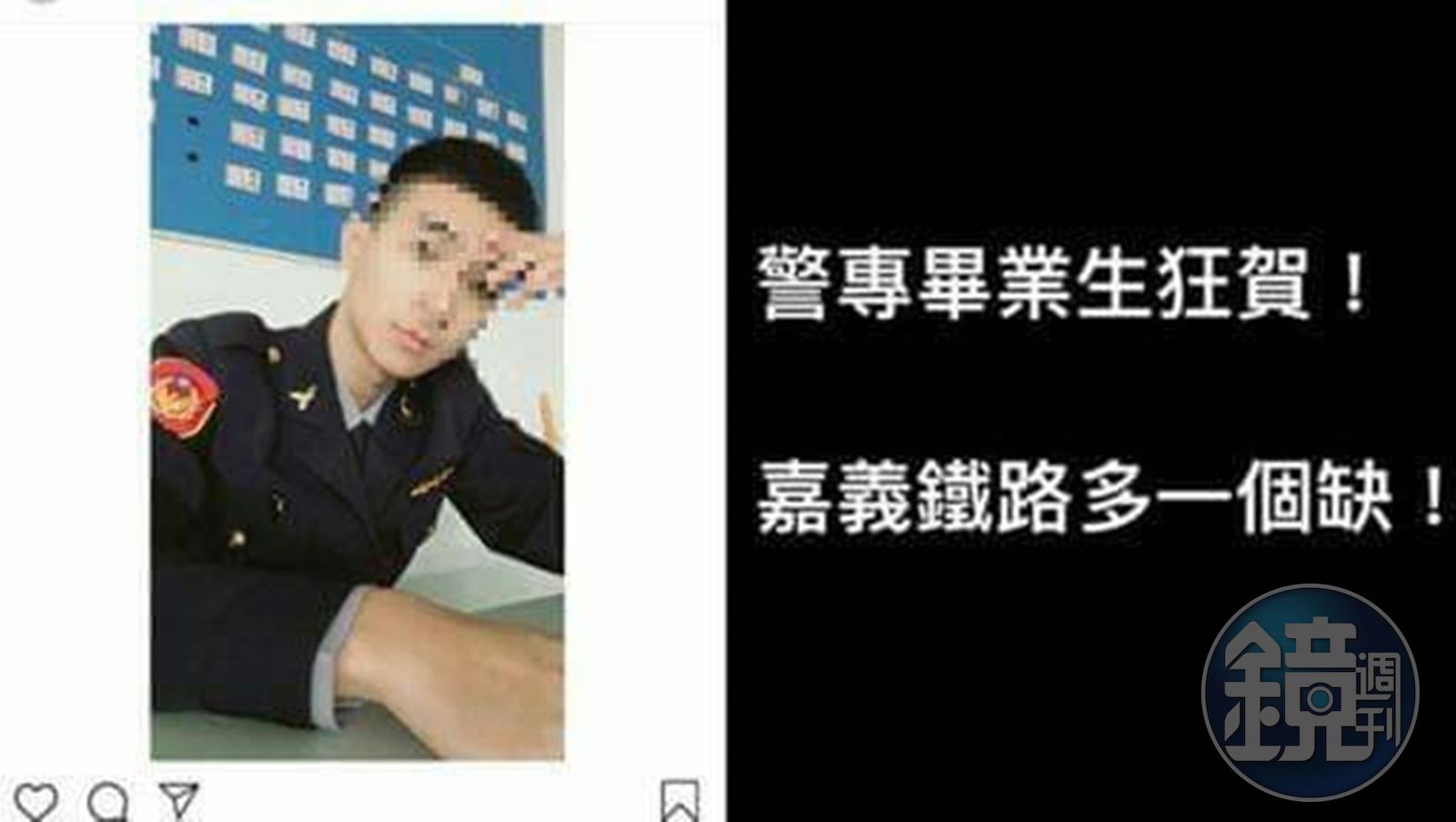 3日晚間鐵路警察李承翰執行勤務時,遭情緒失控的持刀嫌犯刺中腹部不幸身亡。不過卻有1名保五總隊的同僚在IG上大放厥詞,發表「警專畢業生狂賀!嘉義鐵路多一個缺」的貼文,被網友發現後洗版砲轟。