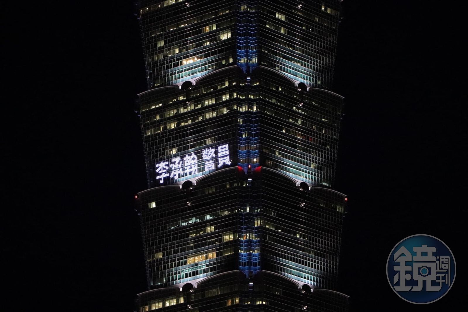 101大樓悼念勇警李承翰,秀出令人感動的畫面。(翻攝畫面)發布時間:2019.07.05 21:41 臺北時間