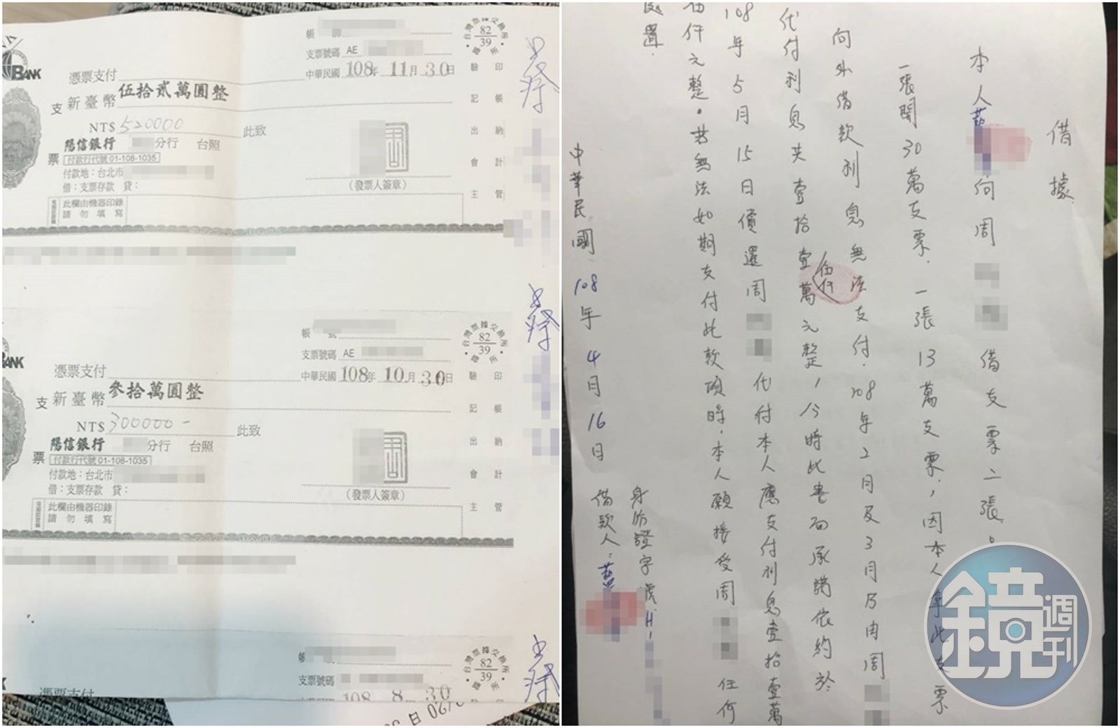 阿慶說,藍姓偵查佐每次總說他會親自處理這些債務,沒想到卻連利息都沒辦法給付;連2年前藍員欠地下錢莊的錢,都要阿慶幫忙開票支付,更要他幫忙償還其他的欠債,最後只撂下一句:「以後有錢再還!」阿慶表示,日前還被他借出3張未到期支票約200萬元,讓他非常擔心血本無歸。