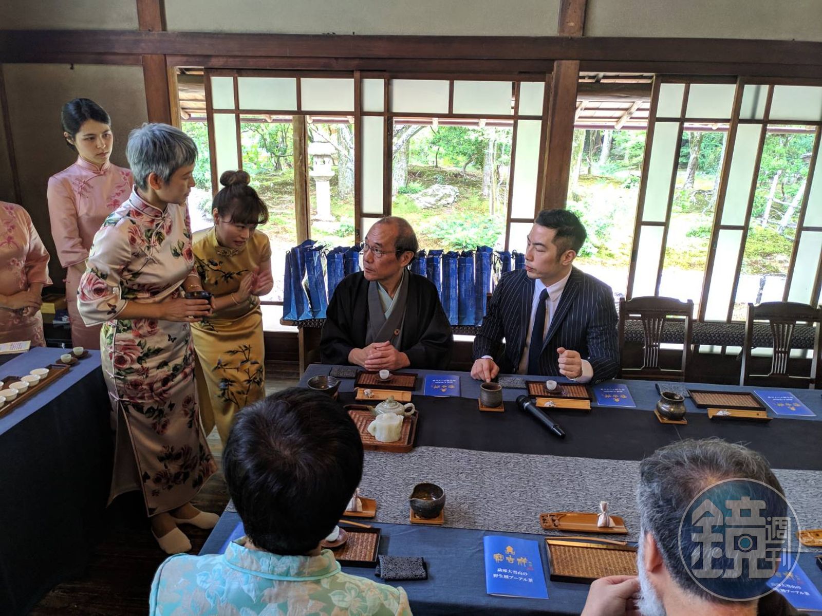 值得一提的是,寶吉祥藝術中心還提供私藏茶具供賓客品茗,其中以價值3,500萬日幣,1910年創作於新疆的和田白玉壺(約新台幣1,000萬元),與同樣市值3,500萬日幣的翡翠魚形茶盤、茶具組最為珍貴稀有,這也讓對茶藝精通的京都市長門川大作讚嘆不已。