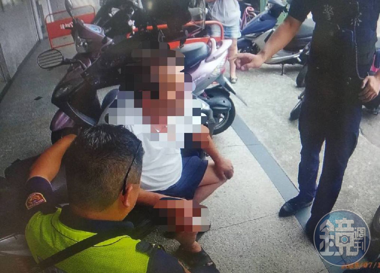 昏倒的陳姓老翁被扶到路旁休息。(翻攝畫面)發布時間:2019.07.12 13:55 臺北時間