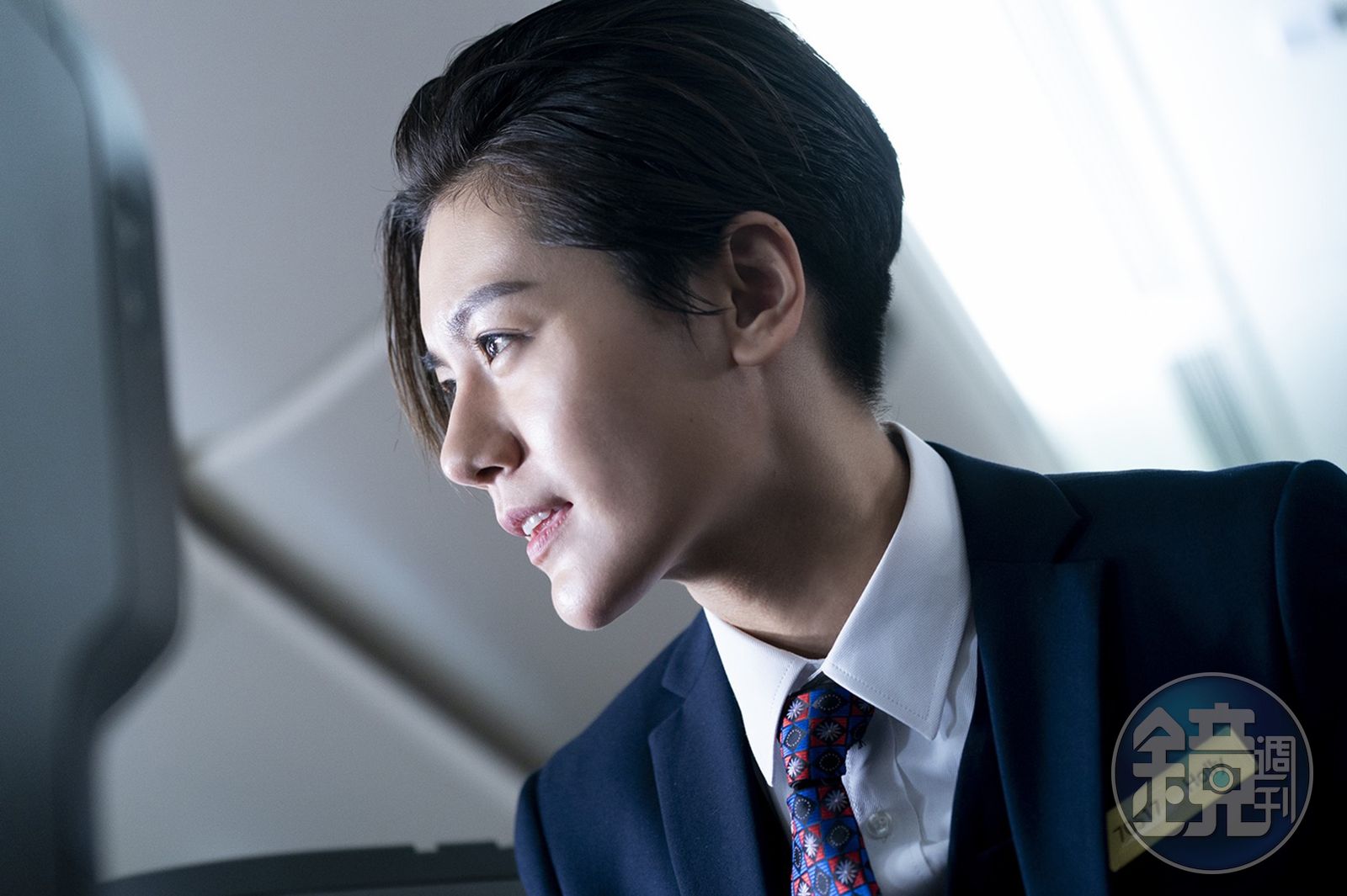 電視電影《帥T空姐》小蠻王承嫣首度扮「空少」造型英氣逼人。(金禾創意、三映電影提供)發布時間:2019.07.15 14:58 臺北時間