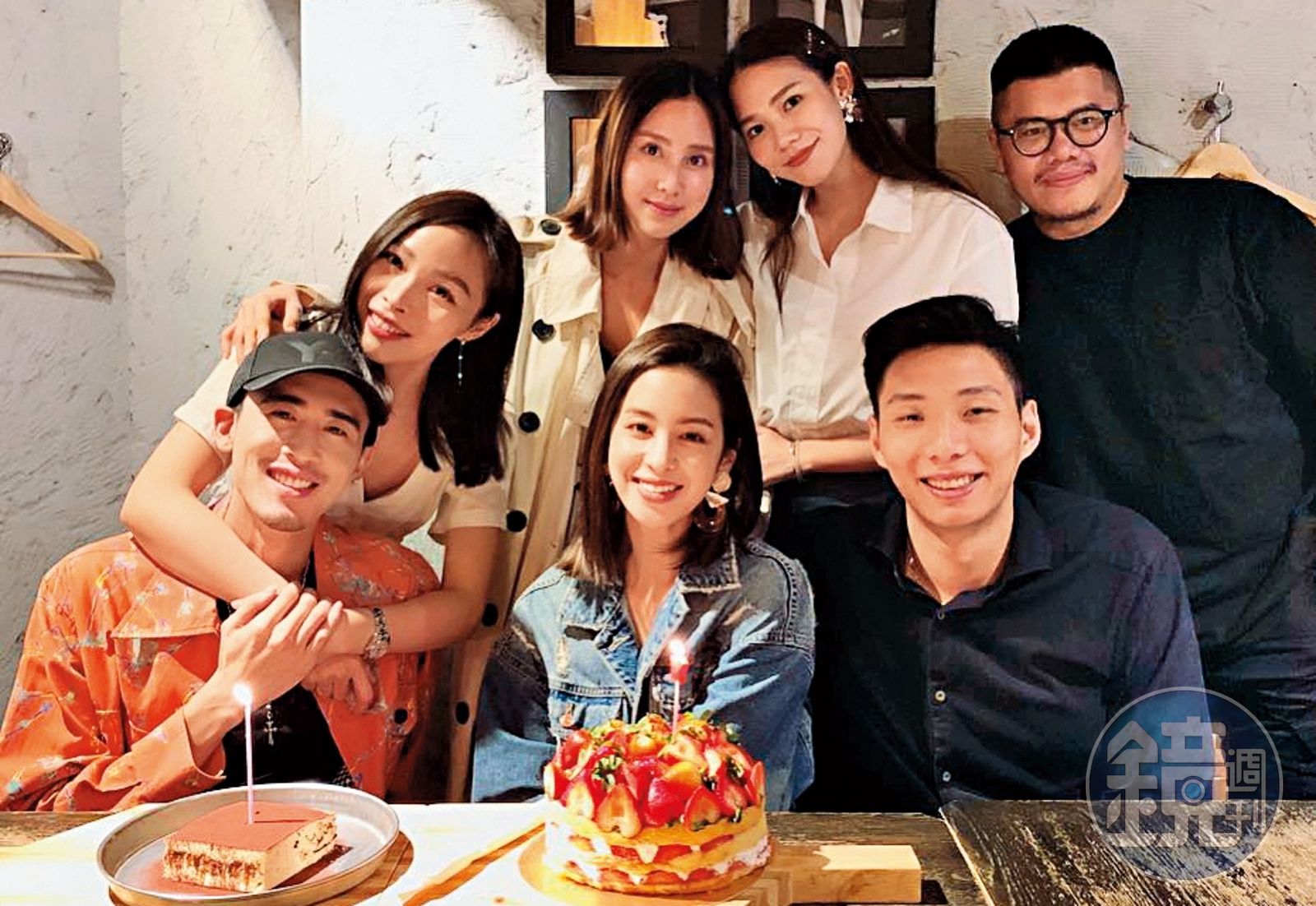 莫允雯(前排中)慶生,鍾秀鼐(前排右)也出席,而且就坐在C位旁,看得出兩人就是一對,戀情升溫很快。(翻攝自莫允雯IG)發布時間:2019.07.17 05:58 臺北時間
