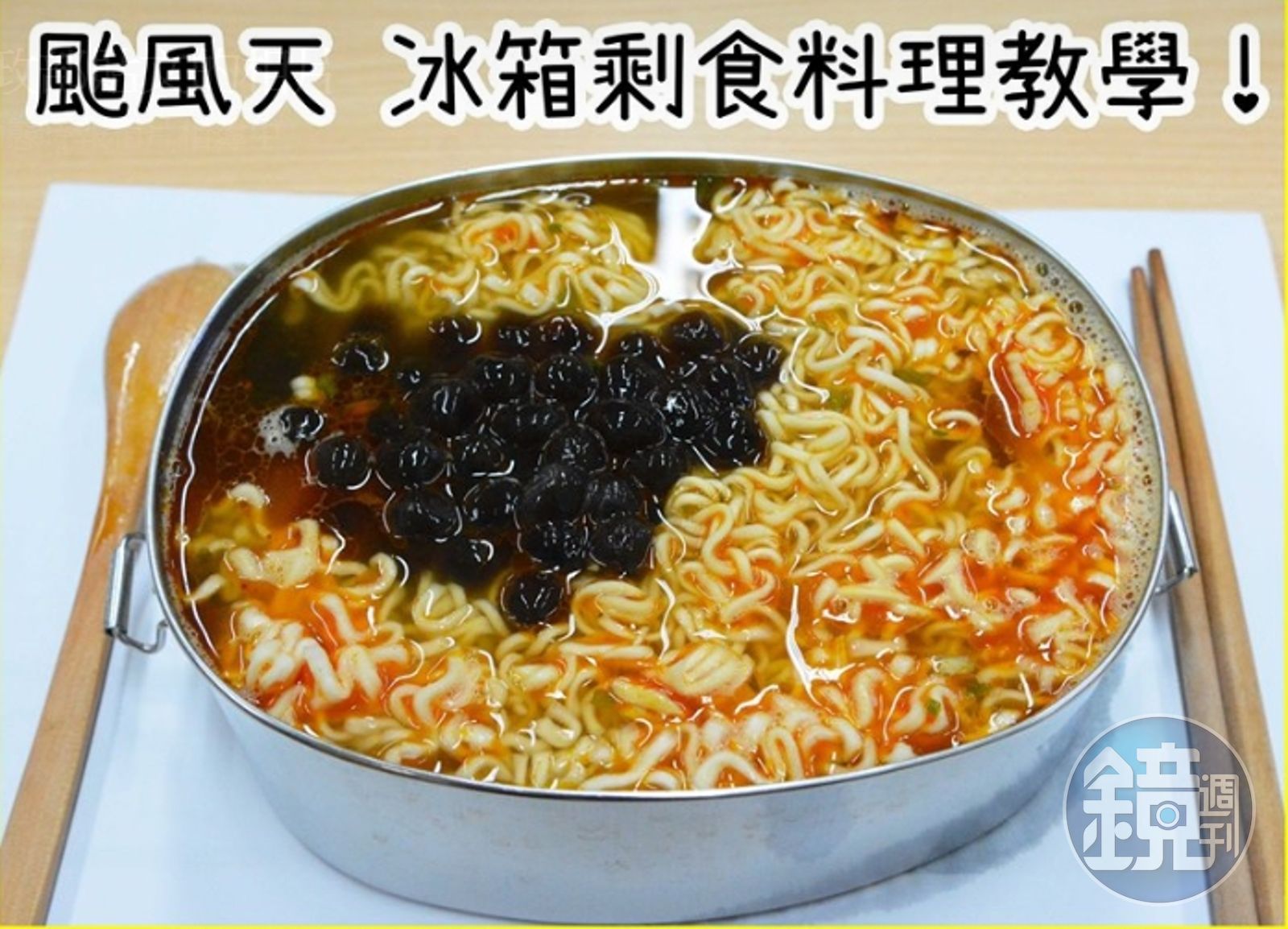 輕颱丹娜絲昨上午發布陸上颱風警報,內政部除了呼籲民眾做防颱準備,也在臉書上貼出一道「冰箱剩食料理教學」食譜,步驟為泡一碗泡麵,取出冰箱喝剩的珍奶,先喝完奶茶,再把冰珍珠加進麵裡即可享用,還附上小撇步指出,熱湯可以把冰珍珠泡軟,也表示圖片中的珍珠泡麵已經由猜拳最輸的同仁吃完了,沒有倒掉的疑慮。