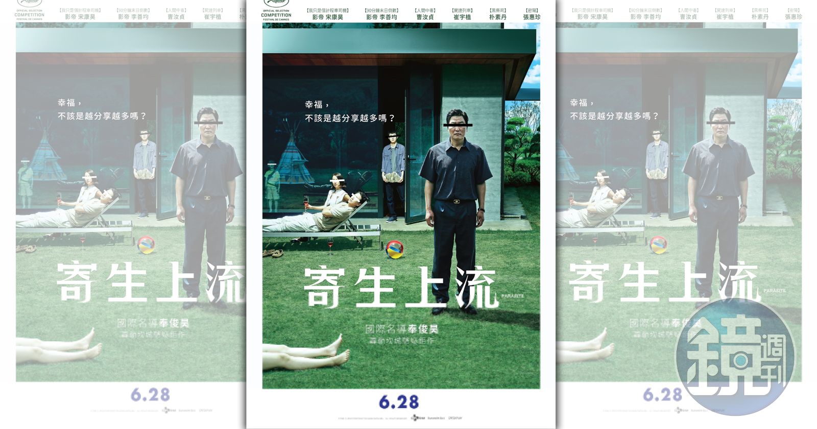 導演奉俊昊坦言自己並未參與海報設計,所以也不知道答案,留給觀眾各自解讀。「我不知道角色的眼睛為何要遮住,也不知道躺著的人是誰,一切都是海報設計師在讀過劇本後的創意,我也很驚喜海報最後是以這個樣子呈現。」