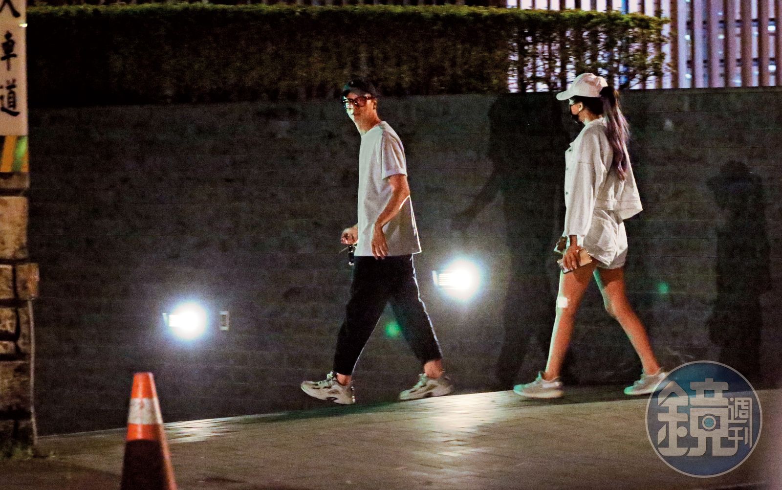 同樣是8日晚間11點半,廖人帥家的車庫緩緩敞開,他跟一個穿著條紋裝的女生走出來,小倆口小清新小浪漫地穿著情侶裝、踩著電動滑板車滑行,感覺正在約會,而且似乎發現被跟拍,所以他們繞啊繞的消失在夜色之中。相比他跟蕾菈的互動,這名條紋女確實比較像廖人帥的正宮。