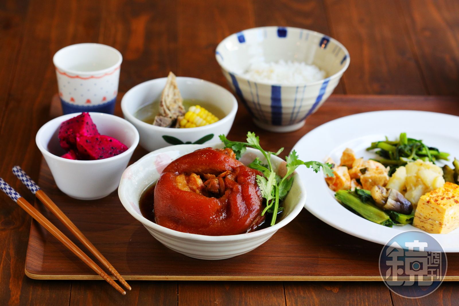 Morning把過去對攝影的吹毛求疵,轉移到他對料理的熱情,每天早晨他堅持到市場採買新鮮食材,從選蛋、挑菜等,他已經變成市場眼光最犀利的煮夫。先煮後滷的「招牌豬腳」,或是每日搭配市場不定期推出的魚料理,「我今天專程來吃你的豬腳。」隔壁桌客人對Morning這麼說著,我想這就是他倆想要帶給客人的幸福滋味吧!