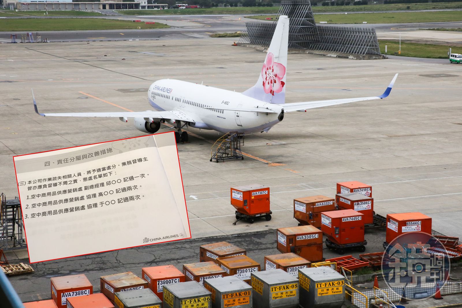 王國材昨(24日)晚間下通牒,要求華航今天(25日)下午5點前必須開記者會說清楚。本刊獨家取得華航在會中提出的懲處名單書面報告,謝世謙提出的懲處名單包括空品處副總邱彰信記過1次、空品處2名協理高淑娟及于堯則各記過2次。