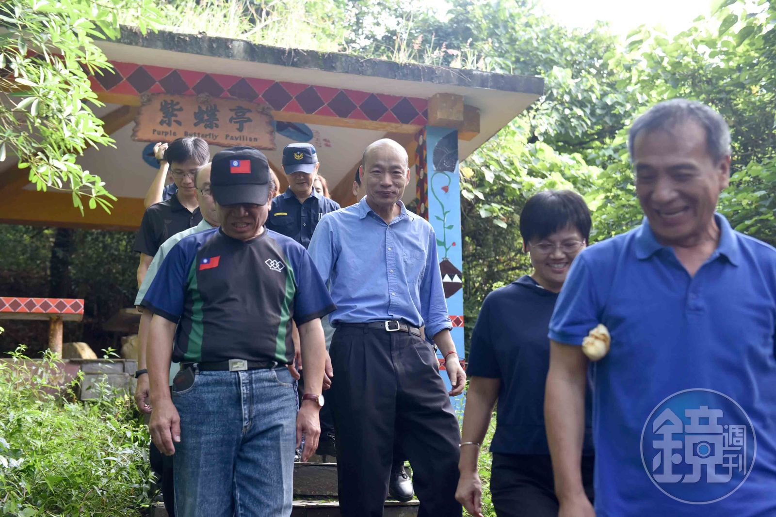 早餐後,韓國瑜由區長宋能正及前任鄉長詹忠義陪同下至紫斑蝶園區健行視察,他表示,茂林是紫斑蝶主要分布區域,循著賞蝶步道欣賞群蝶翩翩舞姿,吸收山上好空氣、品味原民傳統美食,是極佳旅遊行程,未來一定要大力推銷高雄後花園的好山水及傳統文化。