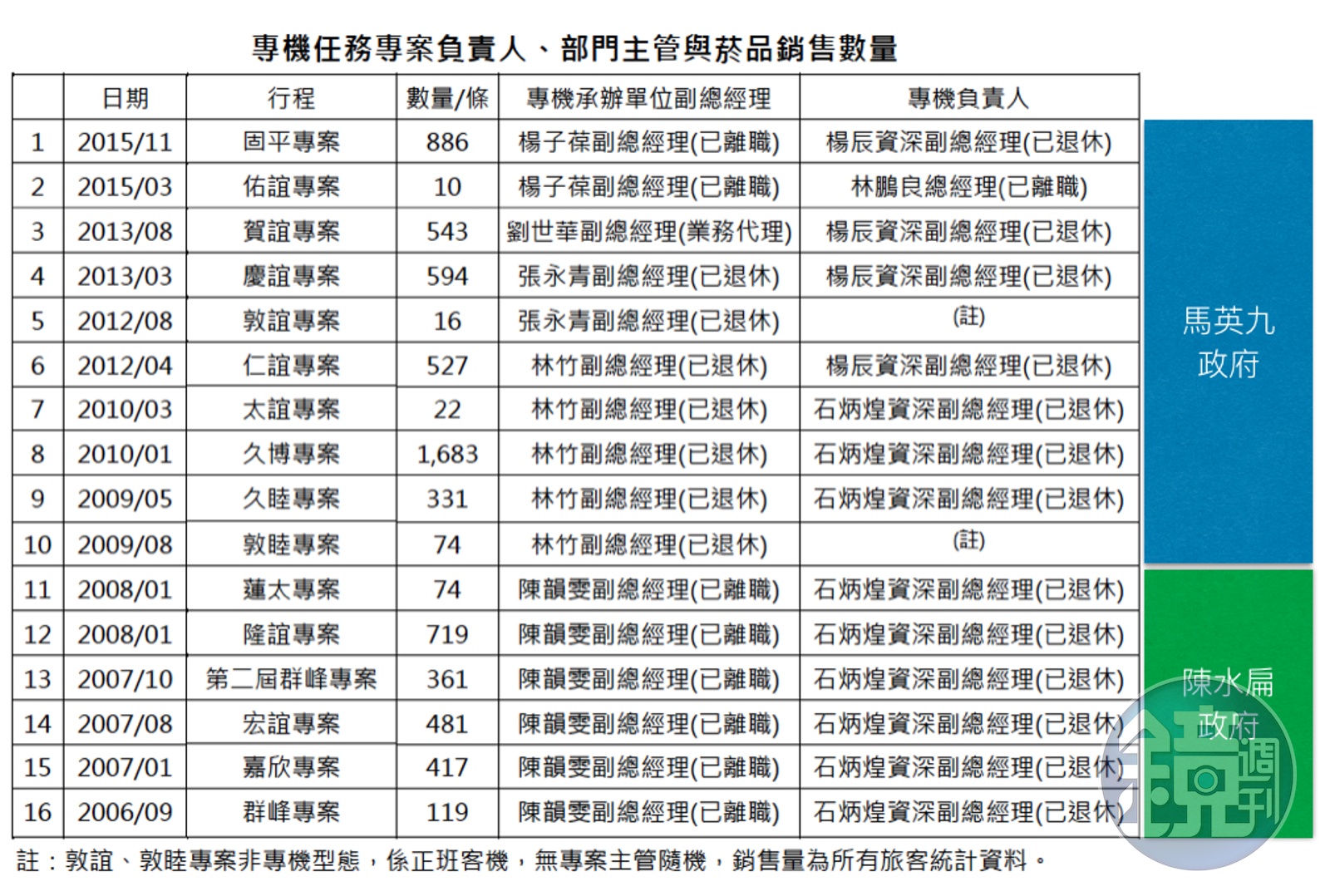 至於馬政府2015年「佑誼專案」與「固平專案」的資料,因華航上次未公布,遭質疑憑空消失,華航今天表示,二次專機任務資料已完成查找,馬政府2015年「佑誼專案」10條,「固平專案」則是886條。