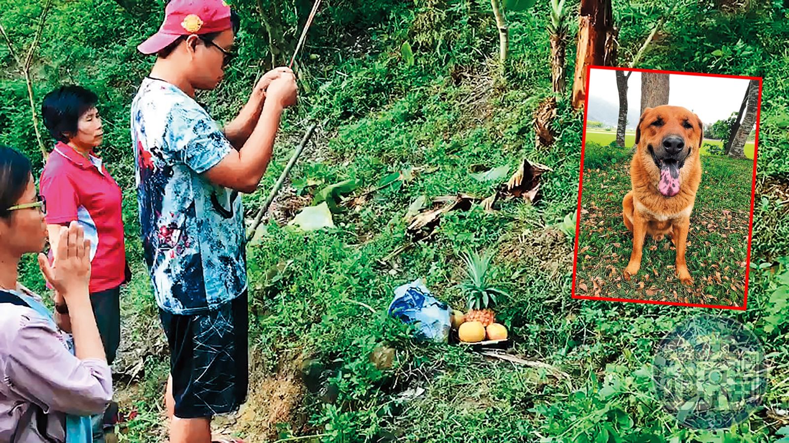 7月20日,台中霧峰一處寧靜的山區,幾個人捧著一個刻有往生咒的白色骨灰罈,難掩悲傷,不斷地喊道:「大頭,乖乖在這睡覺唷!」隨後一行人把骨灰罈埋進土裡,並在上面種了一朵綠色的蓮花,希望骨灰罈裡的米克斯狗「大頭黃」能早日輪迴投胎,下輩子不要再過得這麼辛苦。