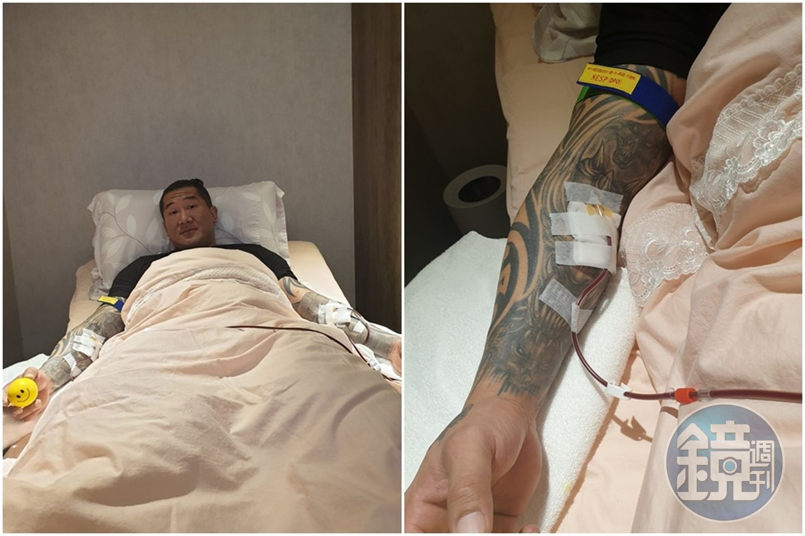 館長日前開直播時透露,自己上個月做體檢,三酸甘油脂、膽固醇、血脂,因為長期睡眠不正常壓力過大,飲食不正常又抽菸,指數相當不好。 館長說自己是個不休息的人,只好去做這個療程,「希望可以讓我身體可以多撐一點時間,去經營我的事業,或是跟這些王八蛋開戰。」他也表示做這個療程必須被綁在床上不能動2.5小時,對他而言滿痛苦的,但整體還算是個愉快的療程。