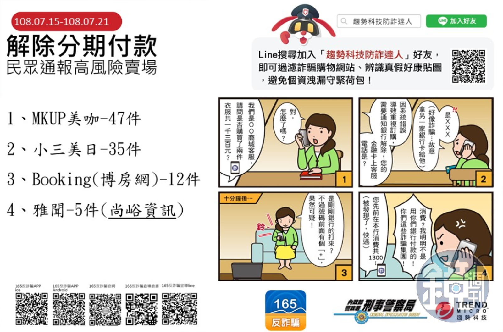 刑事局指出,詐騙集團會透過駭客盜取民眾網路交易資料,假冒電商及銀行客服人員來電行騙,並將來電顯示竄改為真正的銀行客服電話,藉此取信被害人,民眾接到陌生電話時,切勿因為對方說得出自己過往交易細節或來電顯示號碼為金融機構就輕信對方身分,應牢記ATM或網路銀行沒有任何解除扣款或取消訂單功能,有任何疑問歡迎撥打165反詐騙專線諮詢。