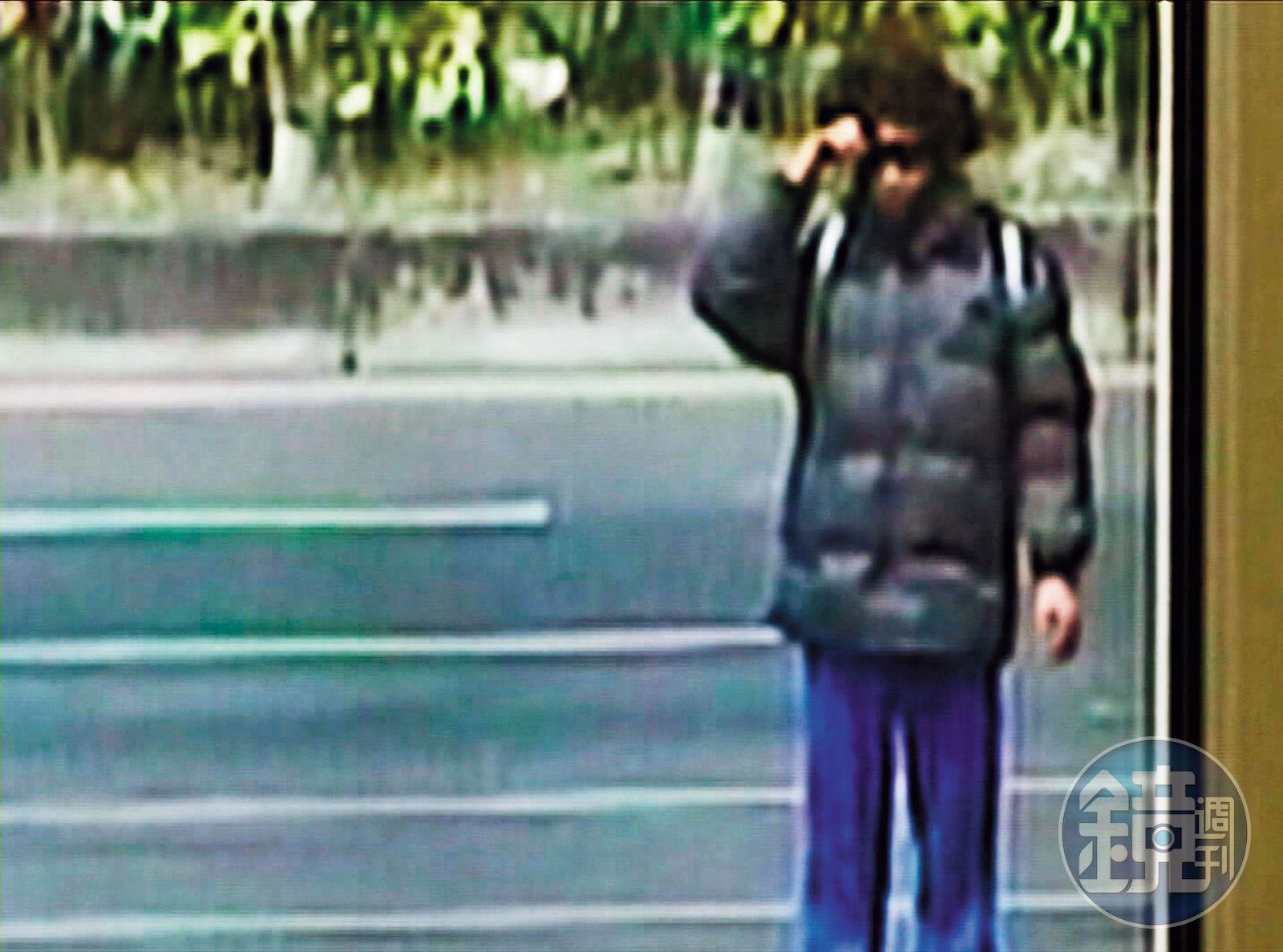 警方調閱監視器,發現陳佳富變裝戴假髮出現在嘉義公路旁。(翻攝畫面)發布時間:2019.08.05 06:58 臺北時間