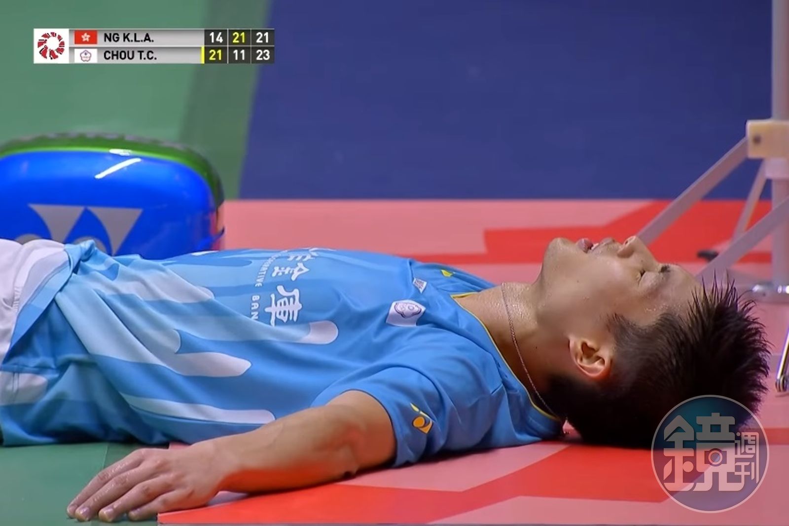周天成昨(4日)與香港好手伍家朗大戰67分鐘,最終以21:14、11:21、23:21獲勝,第3局小天上演強心臟,連拿5分救下4個賽末點,確定封王後他與伍家朗兩人都瞬間累癱倒地,兩人起身後也互相擁抱,並脫下身上球衣交換,這也是小天自印尼公開賽後的本季第二冠。