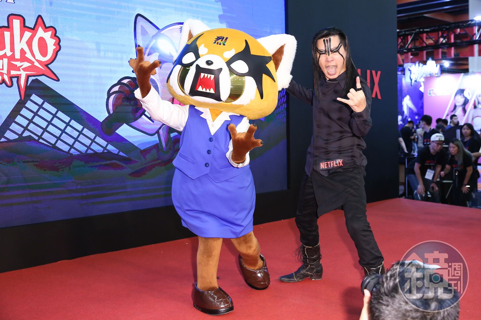 把烈子請到漫畫博覽會就已經夠有趣了,這場「烈子OL宣洩卡拉ok大賽」還有閃靈樂團主唱Freddy一起在台上助陣幫腔,兩邊都是黑死金屬嘶吼腔,實在是聽不出來這是在「合唱」還是在「對嗆」!但台下粉絲的反應超級好,畢竟這種跨領域的合作實在是難得一見!Freddy說漫畫博覽會很好玩,在活動開始前已經先去逛了一下,能有機會來到這裡表演黑死重金屬也很有意思,「從高中一直聽到現在,變成自己組團在玩,其實是一個很好的發洩機會。」