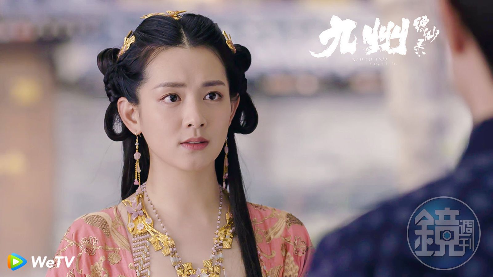 《九州縹緲錄》她飾演小舟公主,一心喜歡劉昊然,先是對他說,「我是被派來照顧世子的人」,後又終於如願能與劉昊然共宿一屋,網友激動喊:「桃花運來了!」護送世子任務圓滿,揭露自己是公主身分時,更對他說,「我的寢殿就在旁,世子若想找人說話,還請隨時移步。」網虧:「這個公主心計真的是好深沉啊!」