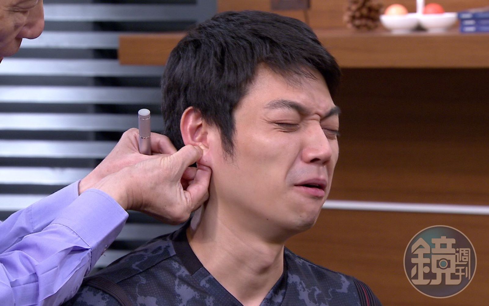 「訂房先生」李沛勳自曝有脊椎側彎、骨盆歪斜,因曾鼠蹊部脫臼,「小時候跌打損傷館喬過,後來長大就沒管它」,所以右腿比較短。當現場中醫胡乃文醫師用點筆刺激李沛勳「頸三、眼肌、視神經」耳朵三穴救視力,李沛勳被觸碰到耳朵敏感帶,表情顯得苦澀。