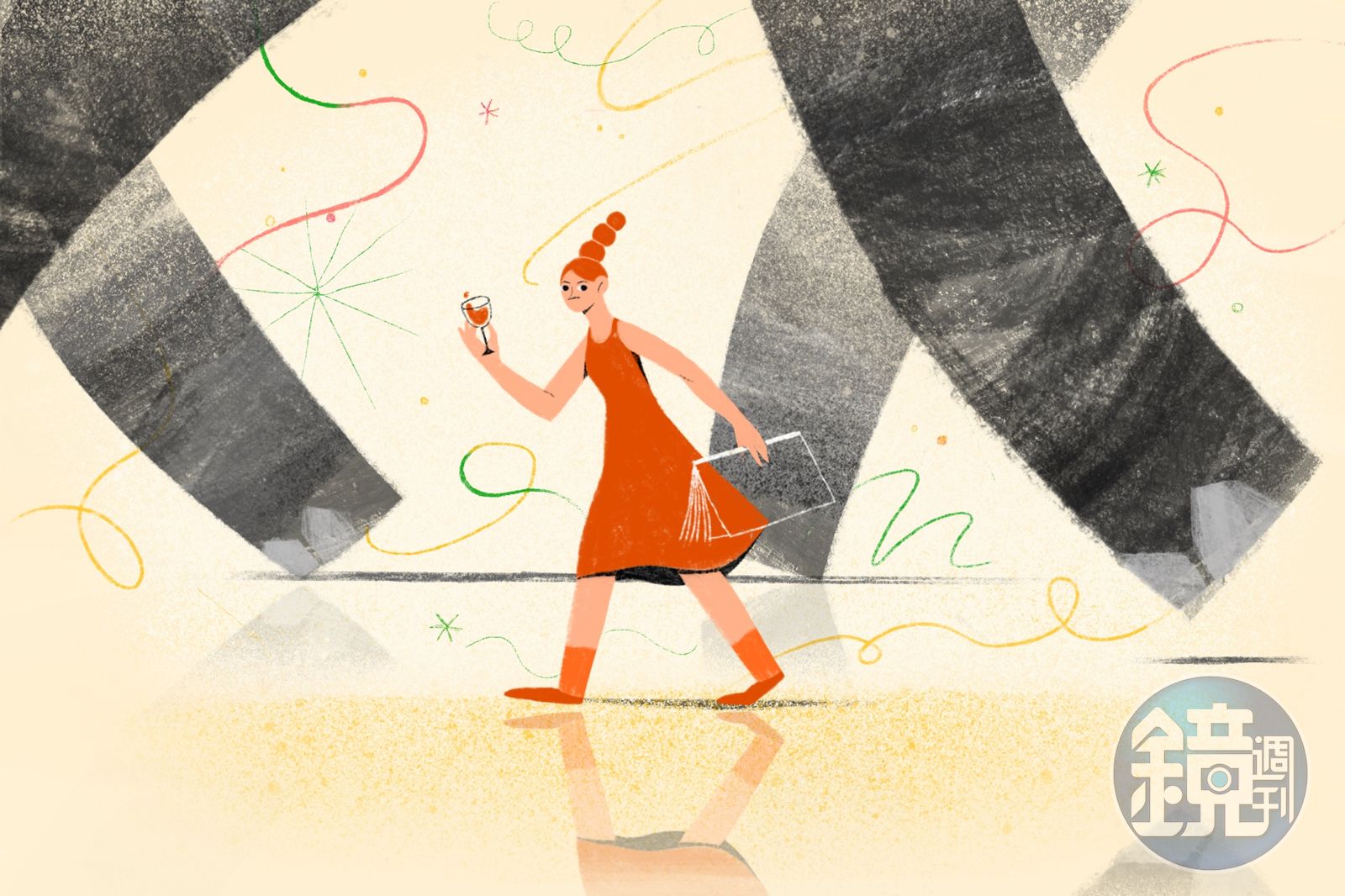 一手拿書本、一手拿酒杯