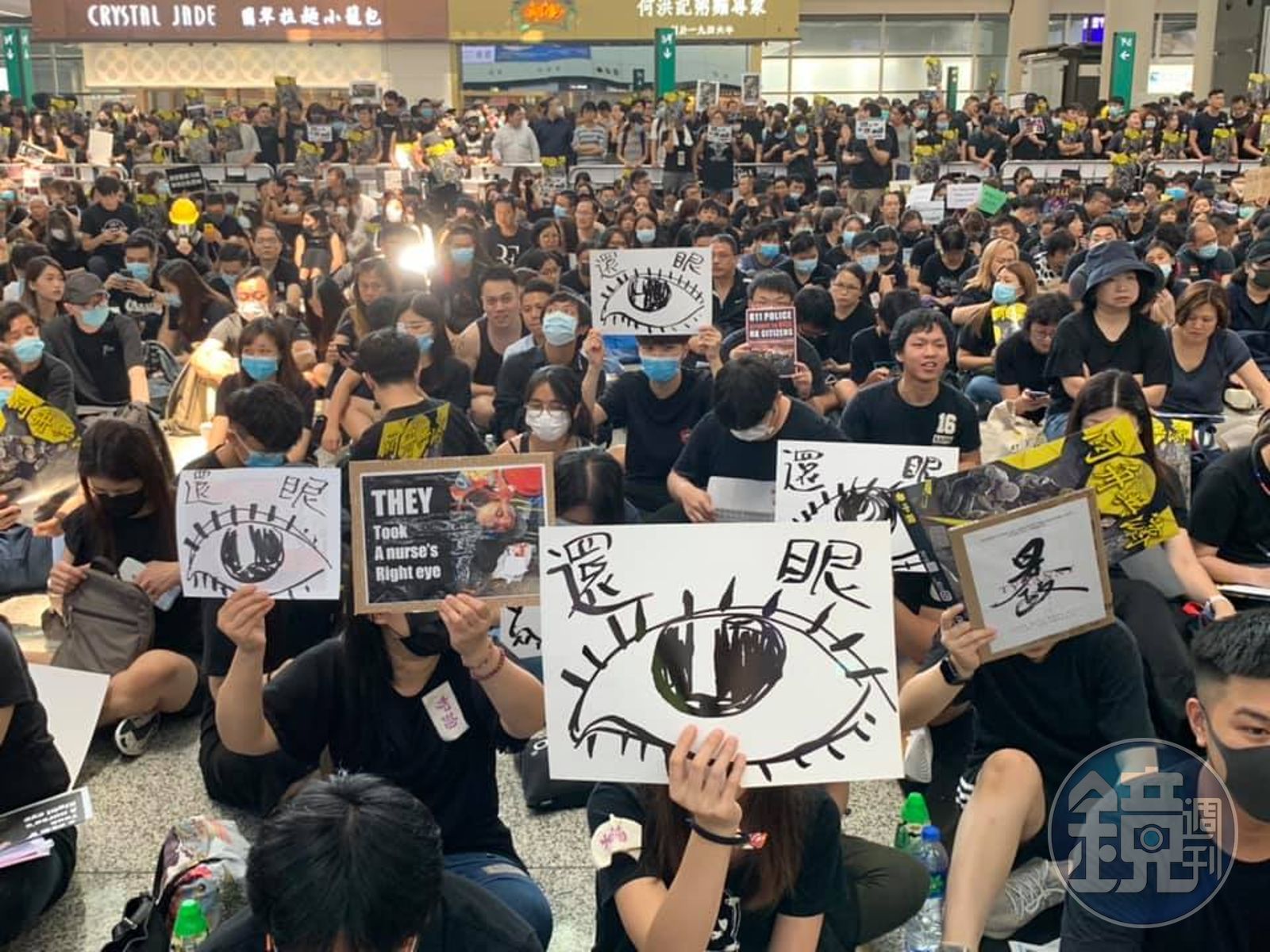 香港昨晚間多地有快閃抗爭,不過皆遭警方強力鎮壓,有人門牙斷裂、血流滿地仍遭警察與「黑衣人」壓制帶離,另有一名女性示威者護目鏡遭布袋彈射穿,導致右眼球破裂緊急送醫,恐造成永久失明,港警鎮壓過程甚至波及不少一般民眾。因此,香港網友號召「百萬人塞爆機場」抗議行動,要求參與者以黑布遮眼在機場集合,以示「警察還眼」,並要求政府回應五大訴求,目前已塞爆機場。