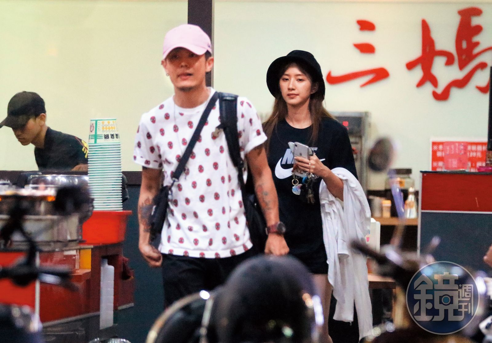 接著阿電再把車停到另座機械式停車場,然後徒步離開,此時謝翔雅突然冒出跟他會合,小倆口牽著愛的小手,一路走到了其實頗不浪漫的「三媽臭臭鍋」。