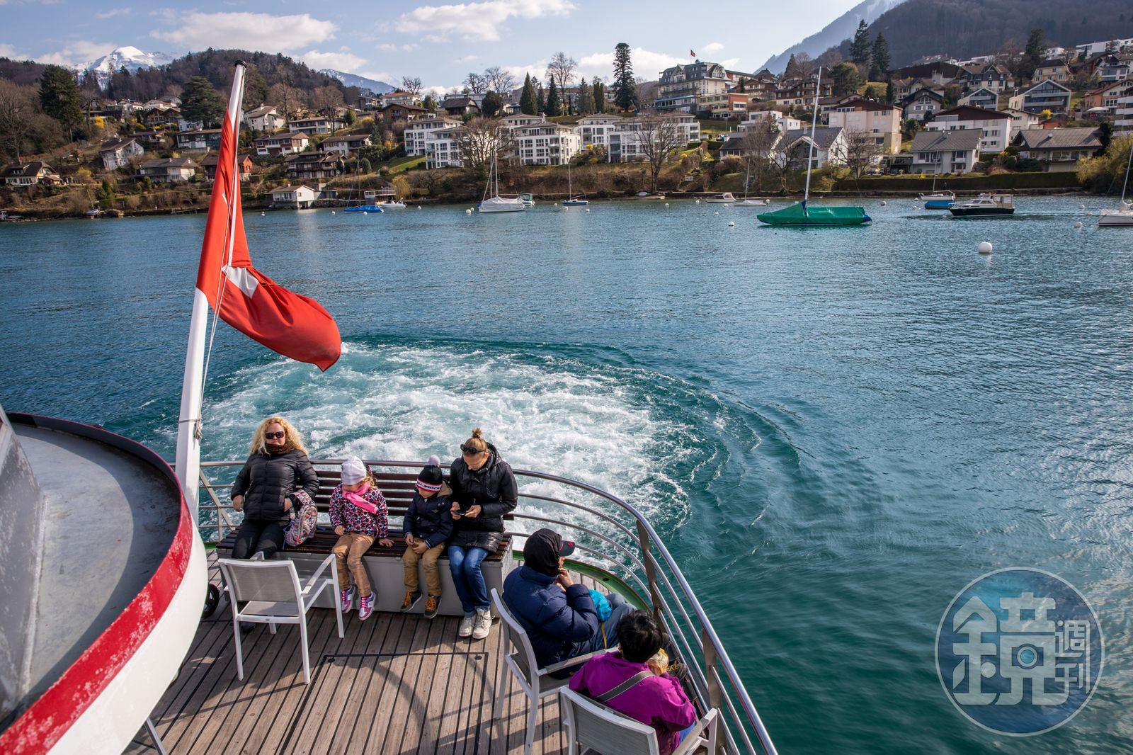 圖恩湖三面環山,阿爾卑斯群峰有時近在眼前,船緩緩行駛,水流波動後又會回到湖岸另頭,景色千變萬化。約莫兩個小時後,船會抵達湖另一側的圖恩小鎮,又是另一段歷史旅程的開始。