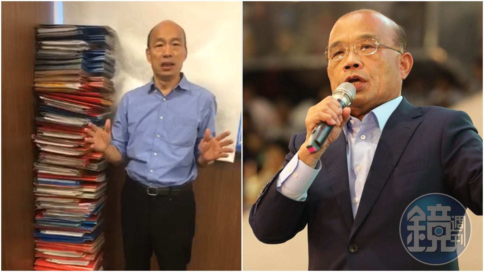 韓國瑜以「立志當全台灣最認真的市長」為題開直播,把之前批過的公文調出疊成和他身高等高,針對批公文大賽隔空叫陣蘇貞昌。韓也強調政府要有集體的結合,並信任文官體制和分層負責,稱首長在政策規劃或決定時,一定要有優秀的政務官和事務官配合,這是高雄市府最重要的精神。