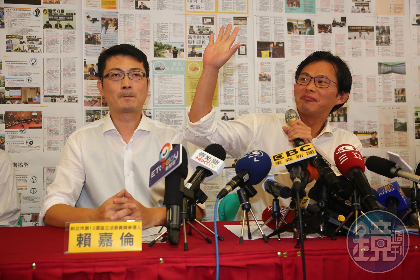 時代力量立委黃國昌(右)的辦公室主任賴嘉倫(左)今宣布參選新北市第12選區立委。