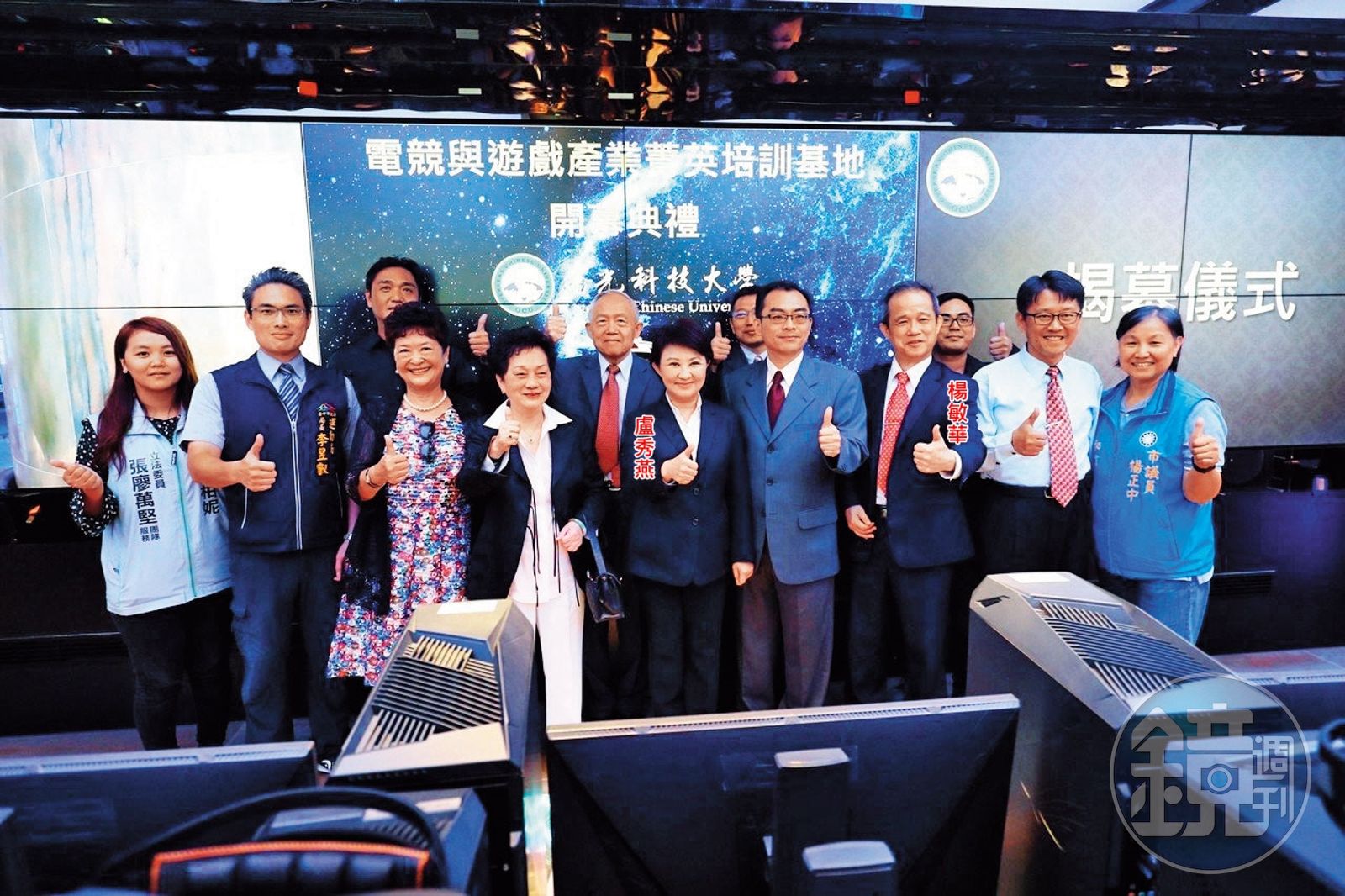 僑光科大日前成立電競基地,台中市長盧秀燕親自到訪,與校長楊敏華等人合影。(台中市政府提供)發布時間:2019.08.21 05:58 臺北時間