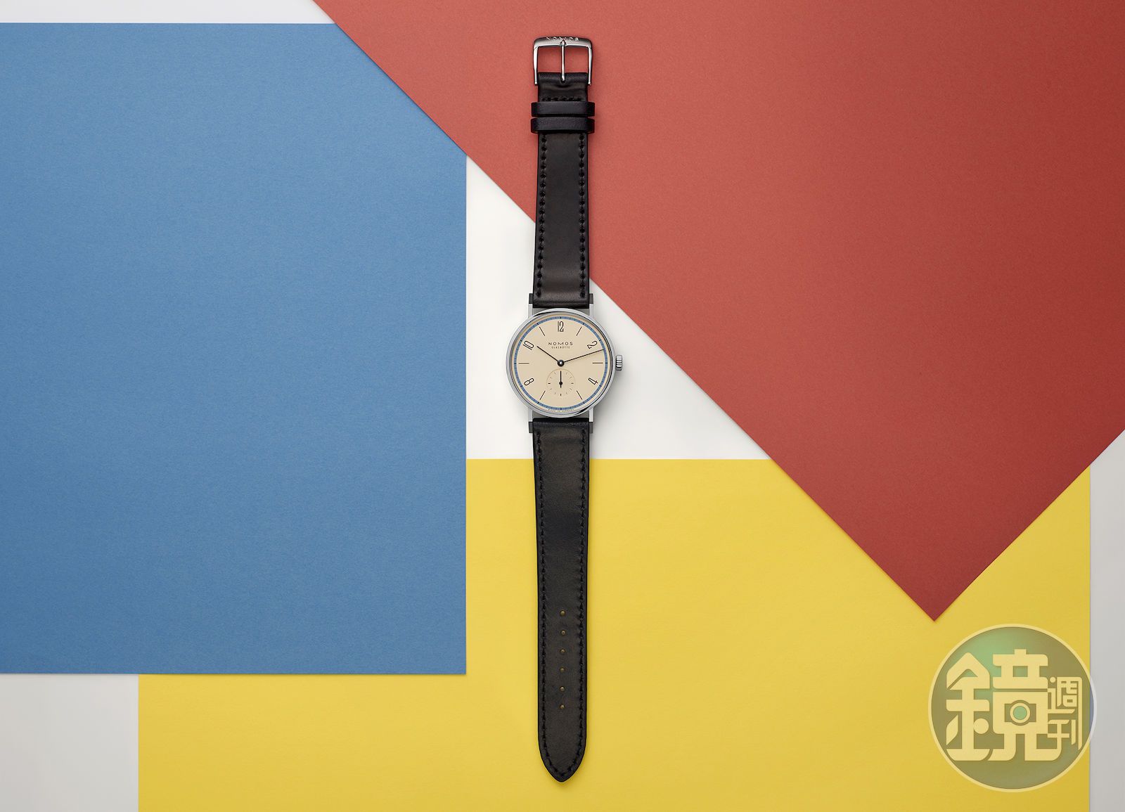 NOMOS絕對是眾多手錶品牌中,講到包浩斯最不二之選的牌子,除了源自德國的身世之外,它本身的簡約風格、講求功能性的實用訴求,都是很符合包浩斯調性的要素。先從NOMOS品牌Logo來看,採用無襯線字體本身就很包浩斯,加上面盤上的每個設計都具有實質作用的,並非為了裝飾而存在,而且以直覺式判讀為考量,組合起來之後就成了NOMOS現在的樣子,成為定義包浩斯風格的範本之一。早先NOMOS也為了今年的包浩斯,推出特別版的Tangente經典款腕錶,用了受到荷蘭風格派影響的正藍、正黃、正紅,堪稱包浩斯三原色的色調,框在分鐘圈刻度上,每個顏色都有33mm、35mm、38mm三種尺寸,限量100只也象徵包浩斯的百年。