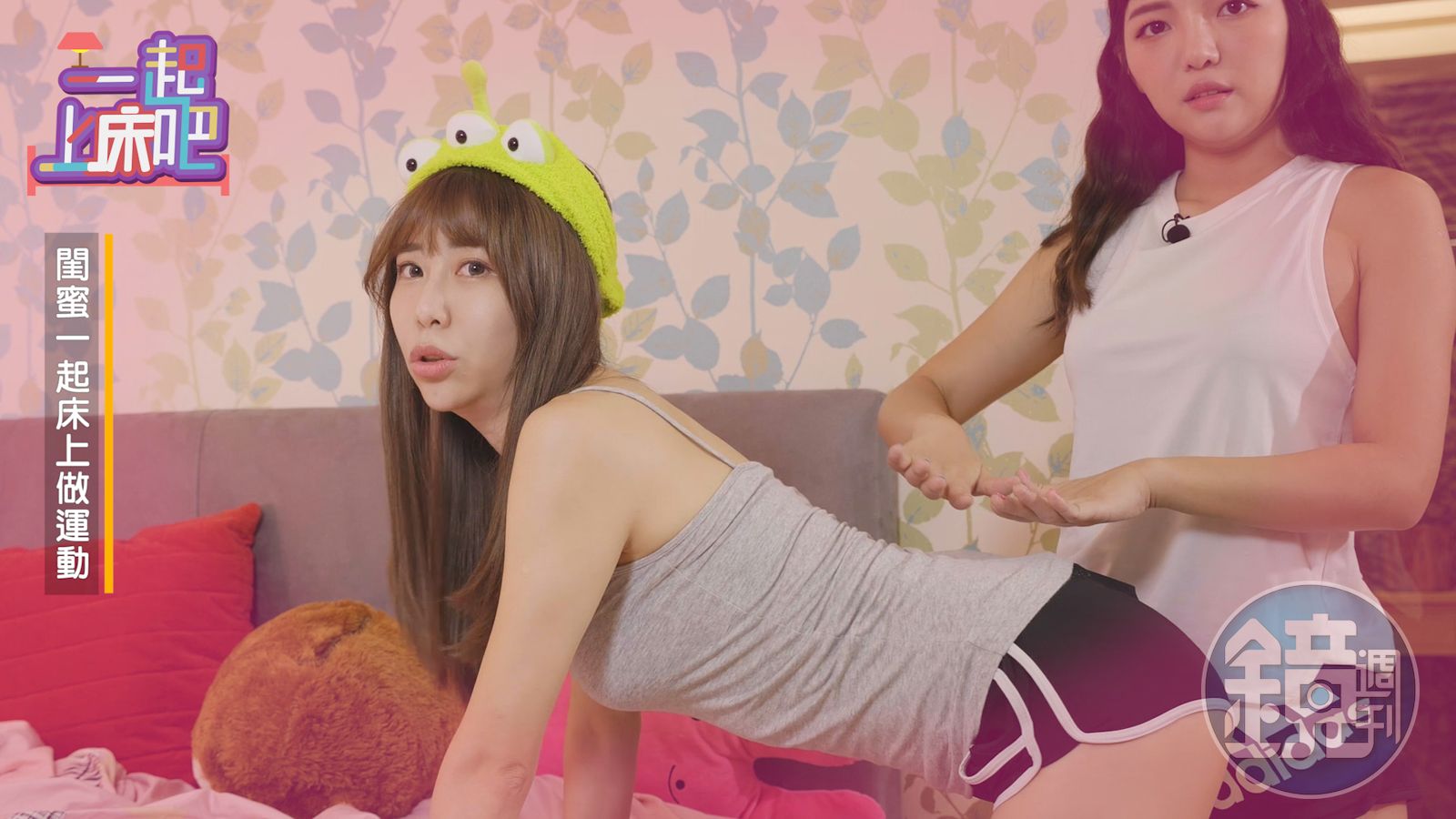 《一起上床吧》邀請何美的閨密梓梓擔任特別來賓,何美大呼開心,因為梓梓就是她生命中的Lucky Girl,只要她在的場合,何美形同吃下定心丸。兩個好友好的程度,是可以在一週前討論下週出國,說走就走的情誼。那次他們是到某個島嶼渡假村,拜梓梓在當地的島主朋友所賜,何美現省旅費,還在旅遊地進行深潛飽覽海底美景。