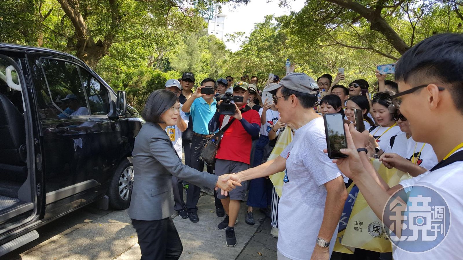 馬英九此行是率領馬英九基金會舉辦的「大九學堂」學員到金門參訪,他在臉書貼出約1分鐘的影片,只見蔡英文特地下車打招呼,現場響起熱烈歡迎聲,不過蔡看到馬英九似乎有點訝異,但2人還是寒暄握手,蔡還問在場歡迎的學員:「是金門人?還是從台灣本島來的?」