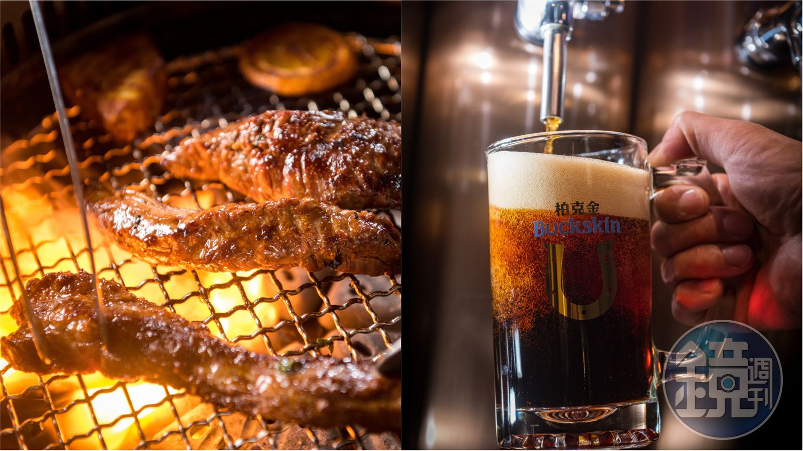 來到金車在台北市南京東路上的大樓,不怕沒酒喝。我在斑馬線前等紅燈轉綠的短短幾秒鐘,雙腳早被太陽烤得熱燙,連帶口乾舌燥,三步併做兩步爬上位於二樓的「柏克金燒肉屋」,先以果香十足的「科隆啤酒」解渴,沁涼酒液滑入喉間,暑氣瞬降一成,剩餘的九成呢?我打算留點肚子,讓啤酒和燒肉表現表現。