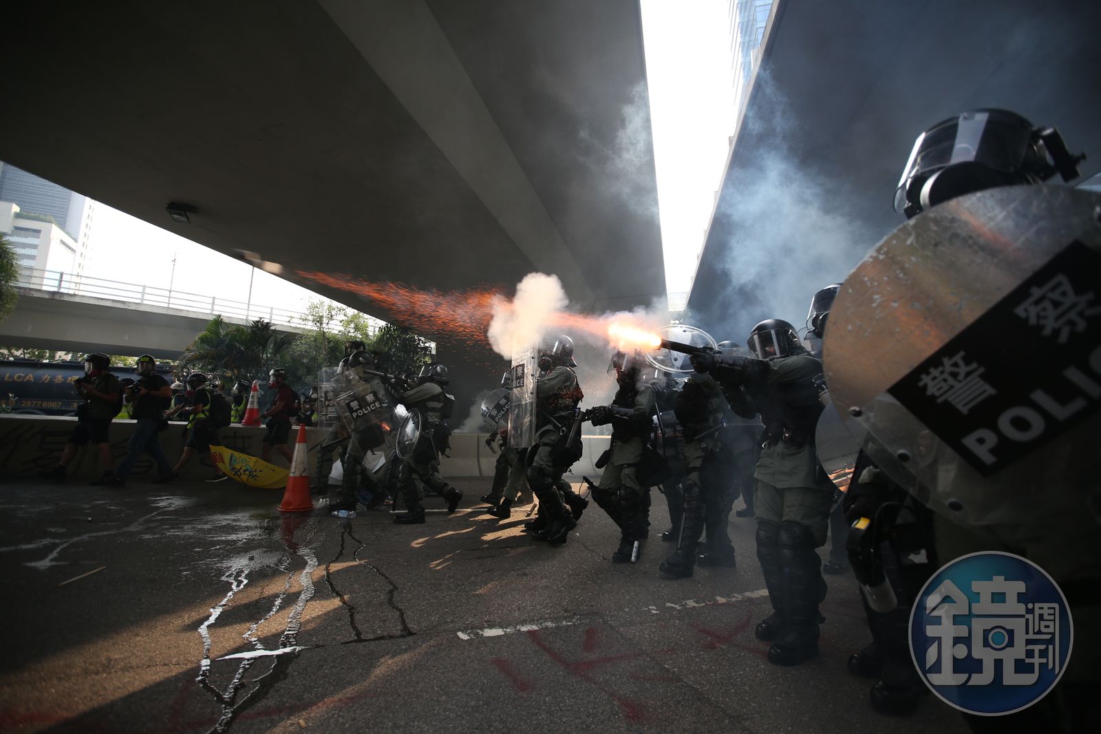 另外,4點半偉業街也爆發警民衝突,部分示威者向防暴警察投擲石頭與磚頭,警方施放催淚彈試圖驅散,隨後速龍小隊也連開多槍胡椒球槍,不過雙方仍持續對峙。晚間6點半,警方再度發射多發催淚彈,示威者被逼退轉至觀塘道,隨後防暴警在觀塘道進行推進,拆除示威者架設路障,並舉起藍旗警告,警民衝突仍持續不斷。