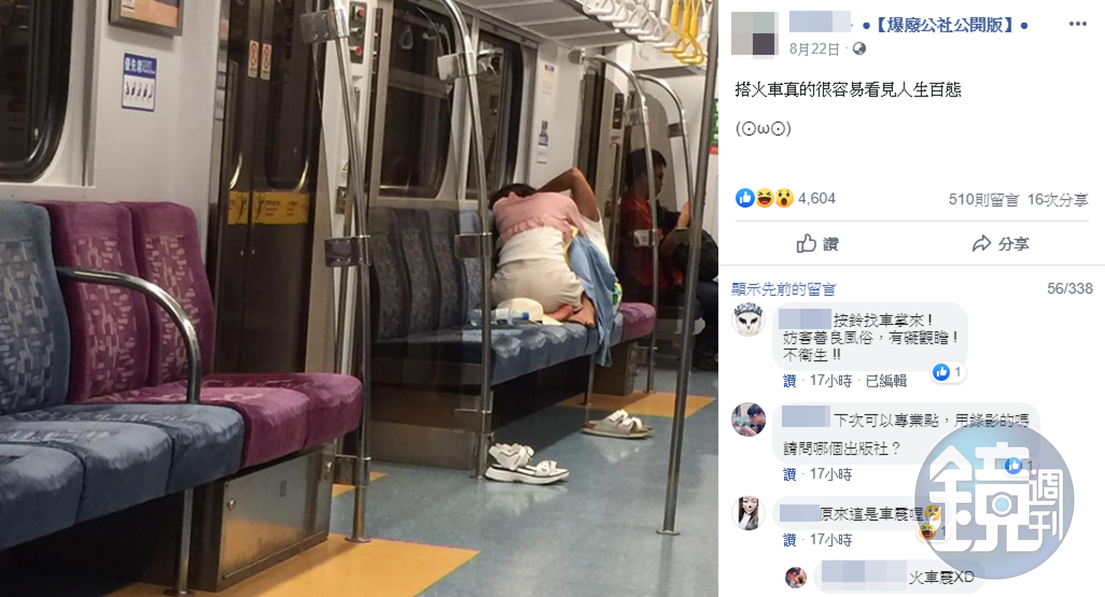其他網友紛紛留言回應,「太噁了吧」「原來片子演的情節都是真的」「車站前旅館休息三小時是漲價了是嗎?」「七月到什麼飄都看得到」,也有人搞笑表示「起碼他們有脫鞋啊!」