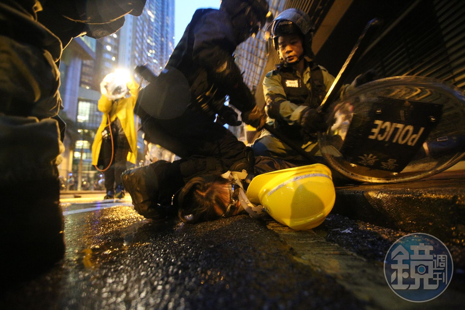 當時有社工目擊男童遭警方反手綁住,手肘正受傷流血,於是在旁高呼男童未滿16歲,要求介入協助,當時有記者想進一步詢問警方逮捕罪名,被警察揮棒喝斥。最後男童被警方押送離去,事後證實男童已聯繫家屬與律師赴警署,陪同錄取口供。