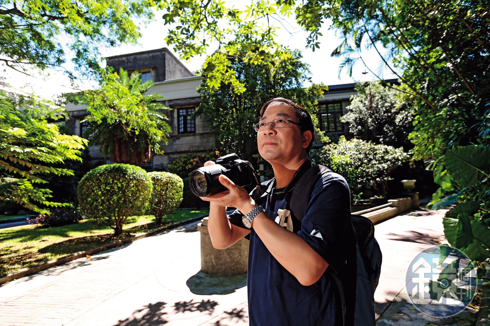 熟門熟路地穿梭於松山文創園區的迴廊間,蕭非凡不時拿起單眼捕捉光影,「我常去拍各地的古蹟,覺得從歷史中才能真正了解當地。」看著充滿時間痕跡的牆面,他說道:「就像我想投資一家公司,會研究到對它祖宗八代都認識的程度,才放心去買。」