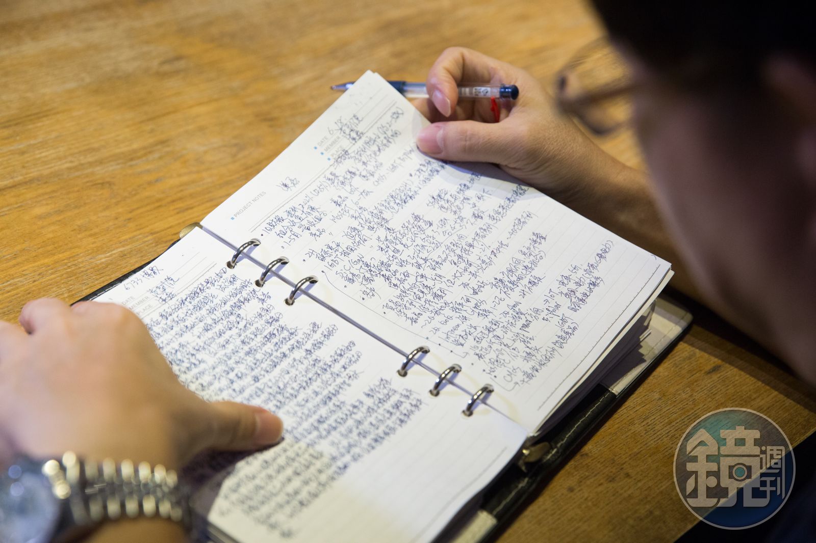 蕭非凡邊講邊拿出一本小冊子,裡頭密密麻麻寫下他對每家公司的研究,「這算是致勝祕笈吧!」投資同好唐祖貽說,蕭非凡筆記本裡的調查真的寫得很仔細,去拜訪企業時還會被發言人稱讚:比公司的員工還了解公司。