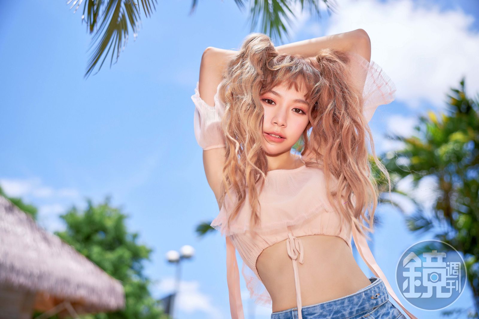 林明禎新歌〈Whoo〉是病毒舞曲風格,也是一首「戀愛能量釋放」的舞曲。(種子音樂提供)除了改變曲風,林明禎也以全新造型亮相,光是髮型就花了12小時漂、染成大膽的楓糖斑比色,服裝則穿上Oversize的牛仔破褲搭配最顯身材的Crop Top,上寬下窄的穿搭比例讓林明禎的川字馬甲線小蠻腰一覽無遺,呈現出她既健康陽光又不失帥氣性感的時尚態度。