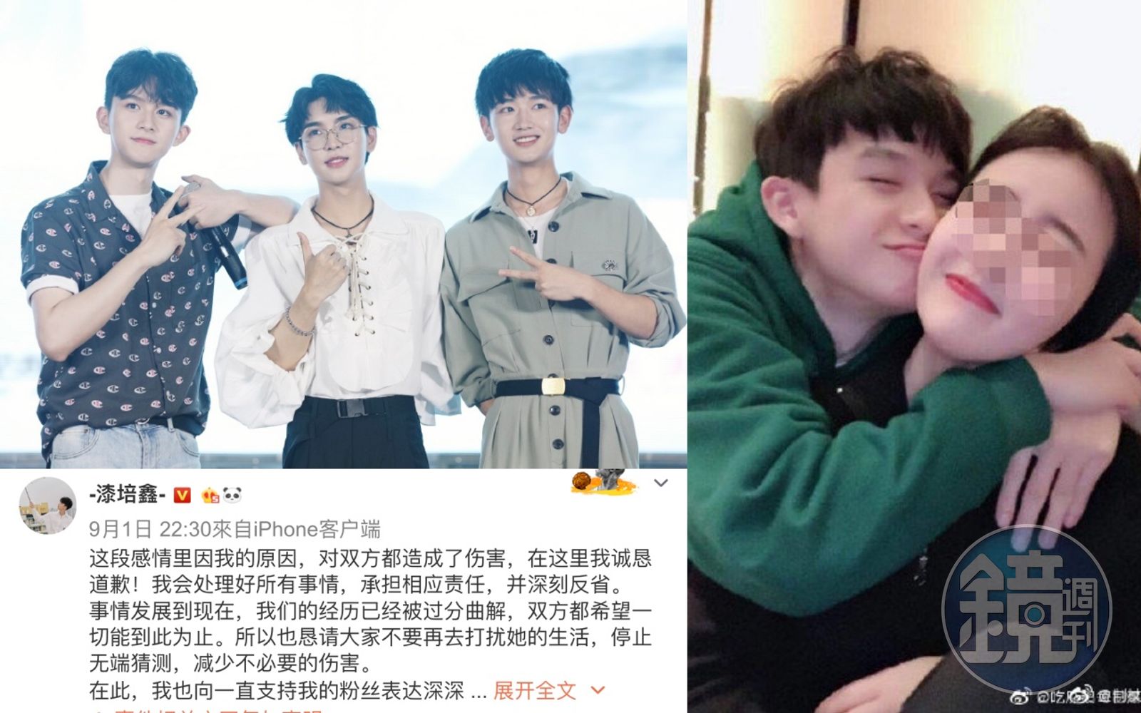 而漆培鑫昨晚透過微博發表聲明,「這段感情因我的原因,對雙方都造成傷害,在這裡我誠懇道歉,我會處理好所有事情,承擔相應責任,並深刻反省。」他表示雙方希望到此為止,請大家勿打擾女方的生活,減少不必要的傷害,也向他的粉絲道歉。支持漆培鑫的粉絲留言「知錯能改,善莫大焉,期待更好的你」,但也有粉絲留下「那女的是自願的,懷孕墮胎很正常」等令人傻眼的留言,更有《陳情令》粉絲希望能將角色與演員分開,演員私事勿牽扯到戲劇本身評價。