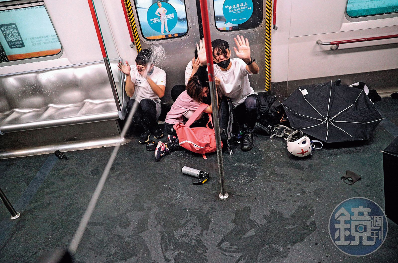 凱莉的同僚阿謙(27歲)當時在車廂內,親眼見到市民撐傘遮臉、警方見人就打,尤其針對年輕市民,簡直是無差別狂毆。一名車廂內的急救員當場痛哭,阿謙冷靜守在一旁,「我看到速龍大吼『屌你老母、給我下車』,追進來罵車上的人『蟑螂』。警察無法區分裡面誰是(抗爭者),所以全部都打。」阿謙協助車廂內的3人止血、上敷料,發現3人皆被打爆頭,傷口約3.5至4公分不等,「那不是普通警棍造成的傷勢,若只是警棍,頂多嚴重紅腫,但每個人頭上都有破口,我判斷棍子上應該還有其他東西,也許是鐵環。」