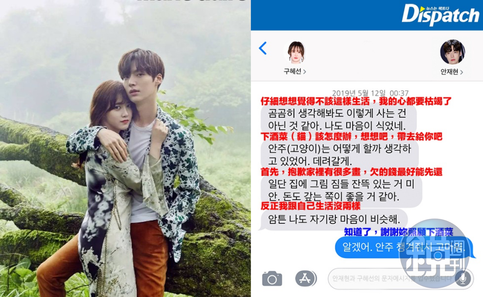 從公開的對話紀錄看到,去年9月1日具惠善發簡訊給老公,「老公我睡了,我愛你喔,辛苦了孩子。」安宰賢回:「我不是孩子啦,老婆我愛你…」雙方仍很甜蜜地對話。但夫妻也有吵架的時候,也出現了他向老婆道歉的文字,畢竟小吵小鬧也是夫妻日常,但愛情就在時間中漸漸被消磨。