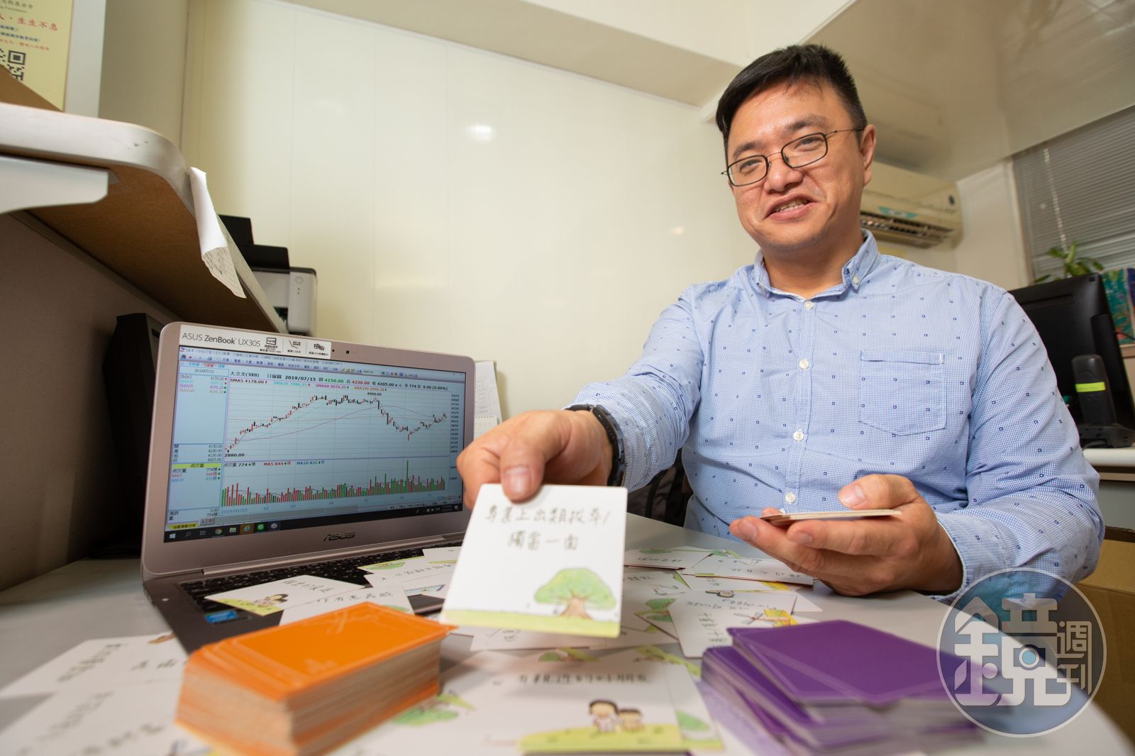 佛洛阿水的本業是諮商心理師,他笑說,現在1天接2組伴侶諮商案件後,回家就完全放鬆了,「以前會積極做期貨、玩當沖,這幾年我喜歡等待合適時機出手,但照樣能賺到比一般上班族還多的年薪。」